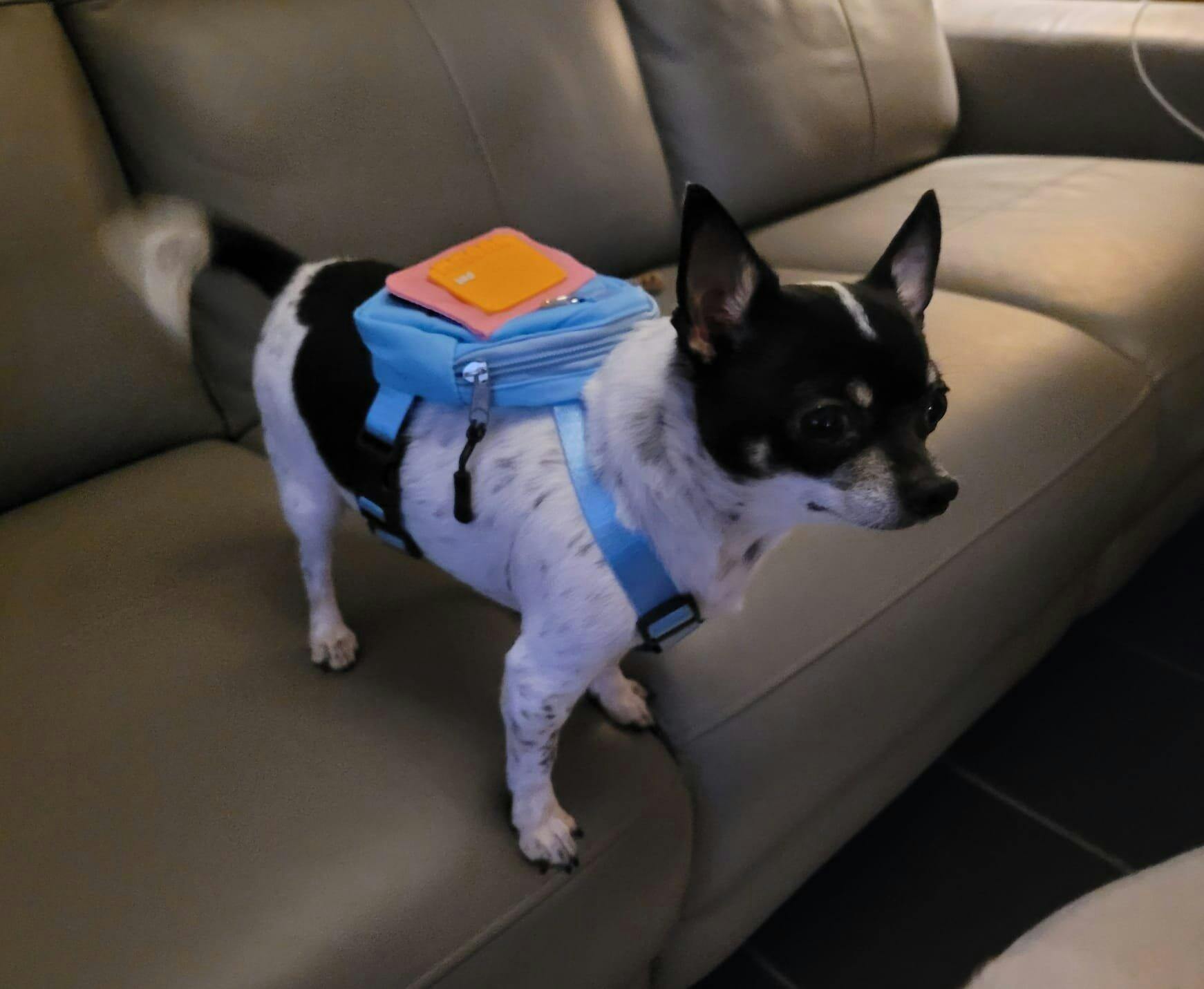 Bitte vorher Abmessung an deinem Hund vornehmen, damit der Rucksack passt und auch bequem für deinen Hund ist.